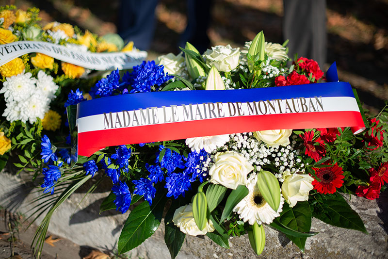 Starting with a remembrance ceremony at the main war memorial in Montauban, Don James joined the French Standard Bearers in a parade to the memorial. AVEN guests and local dignitaries stood for the service culminating in the singing of ‘La Marseillaise’. Jeff laid a wreath on behalf of the NCCF and Nigel laid one on behalf of OBSIVEN.